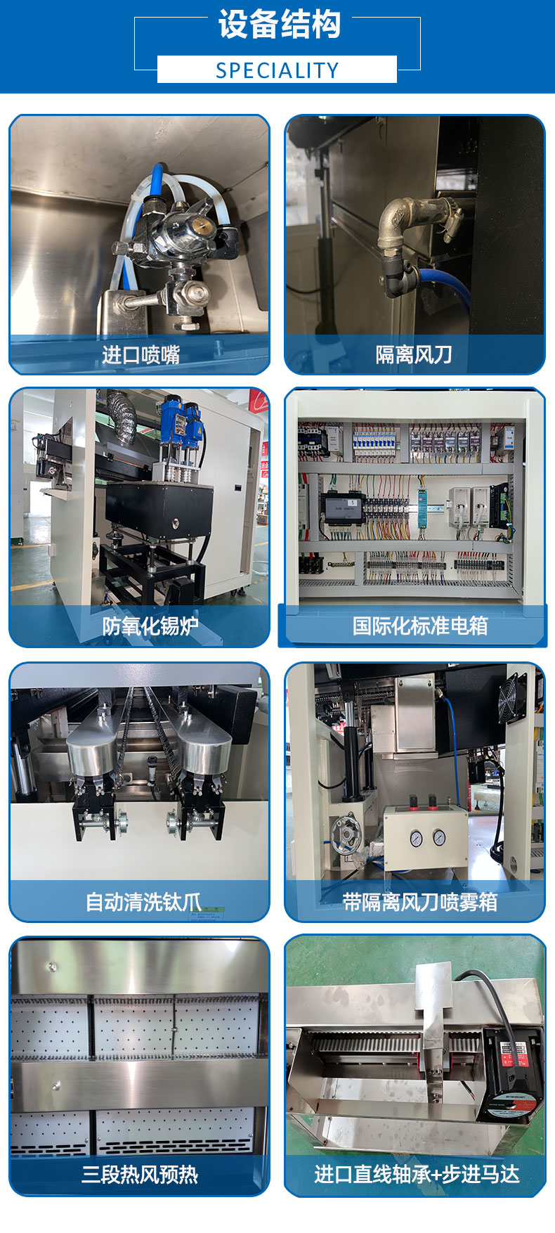 ● 可调式隔离风刀,隔绝助焊剂进入预热箱,确保生产安全