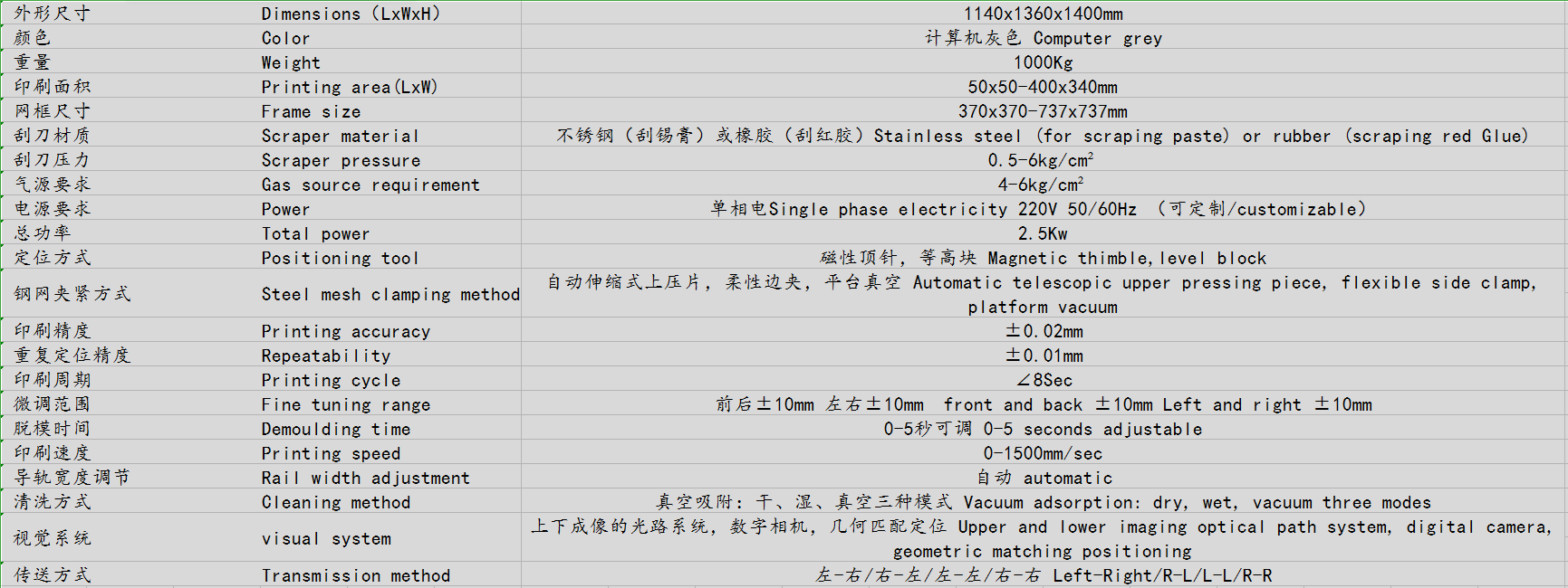 实现各种尺寸网框的印刷,并可实现在生产过程中的快速更换机种。