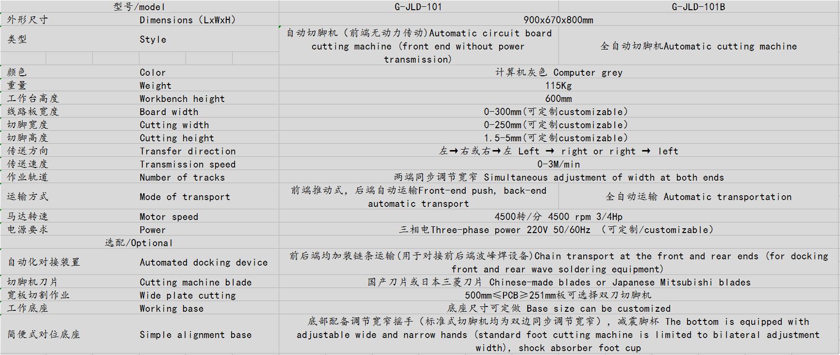 5.标配最大作业PCB板宽度300mm,刀片最大可切250mm(刀片最大尺寸为250mm),可根据产品宽度配备双刀切脚机