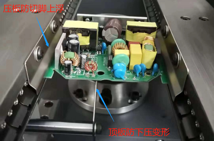 2.升级款一字型顶板装置,可提升焊锡后变形PC板切脚精度
