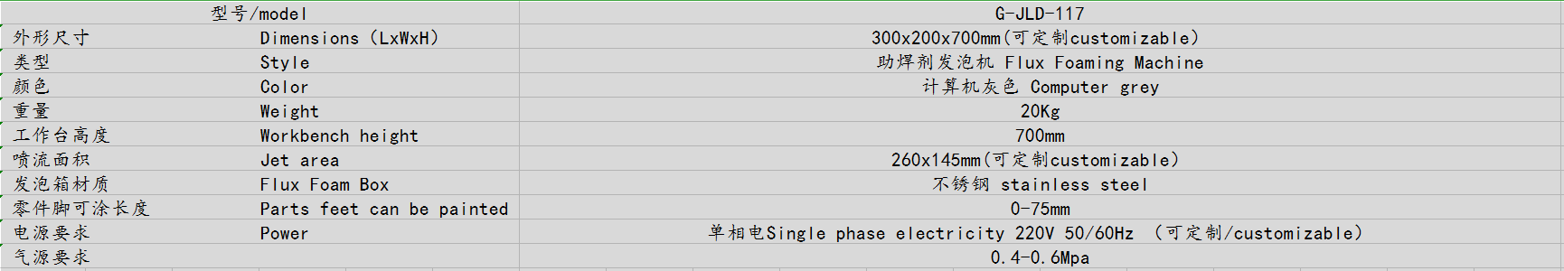 1、发泡机采用不锈钢炉盘电路板有压力指示装置,发泡效果好,使用方便,是确保元件焊接质量的必要设备。