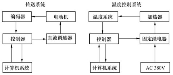 传送控制部分主要通过马达带动链条运行,马达运行的状况通过编码器来反馈给主机,主机根据编码器反馈的信息再来控制马达的运行。