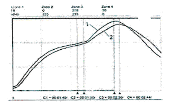 图7中曲线1所不的温度曲线表明回流温度过咼,易造成PCB以及兀器件损伤,应降低回流区温度,而曲线2所示的温度表明回流温度过低。此时焊料虽已熔化,但流动性差。焊料不能充分润湿,故易引起虚焊或冷焊。
