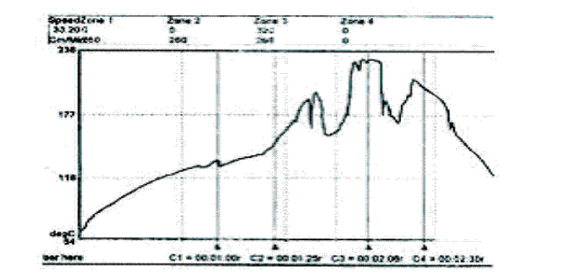 图8所示温度曲线,曲线出现明显抖动,曲线如锯齿状,这通常是由于用来测试温度的热电耦出现故障。