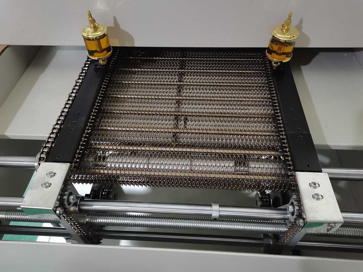 2022年2月16日深圳某客户采购我司大型十温区茄子黄色视频下载用于医疗级镀金产品通孔焊接,该产品使用实心铝治具装载,吸热量极大,且非常重,对PCB板通孔插针上下位置焊接使用10倍显微镜检查必须圆润饱满,光亮,实际温差±1℃。针对产品的高要求,工程部设计为承重网带传动,承重280KG,并使用5mm存热板氧化处理设计,满足客户的需求。