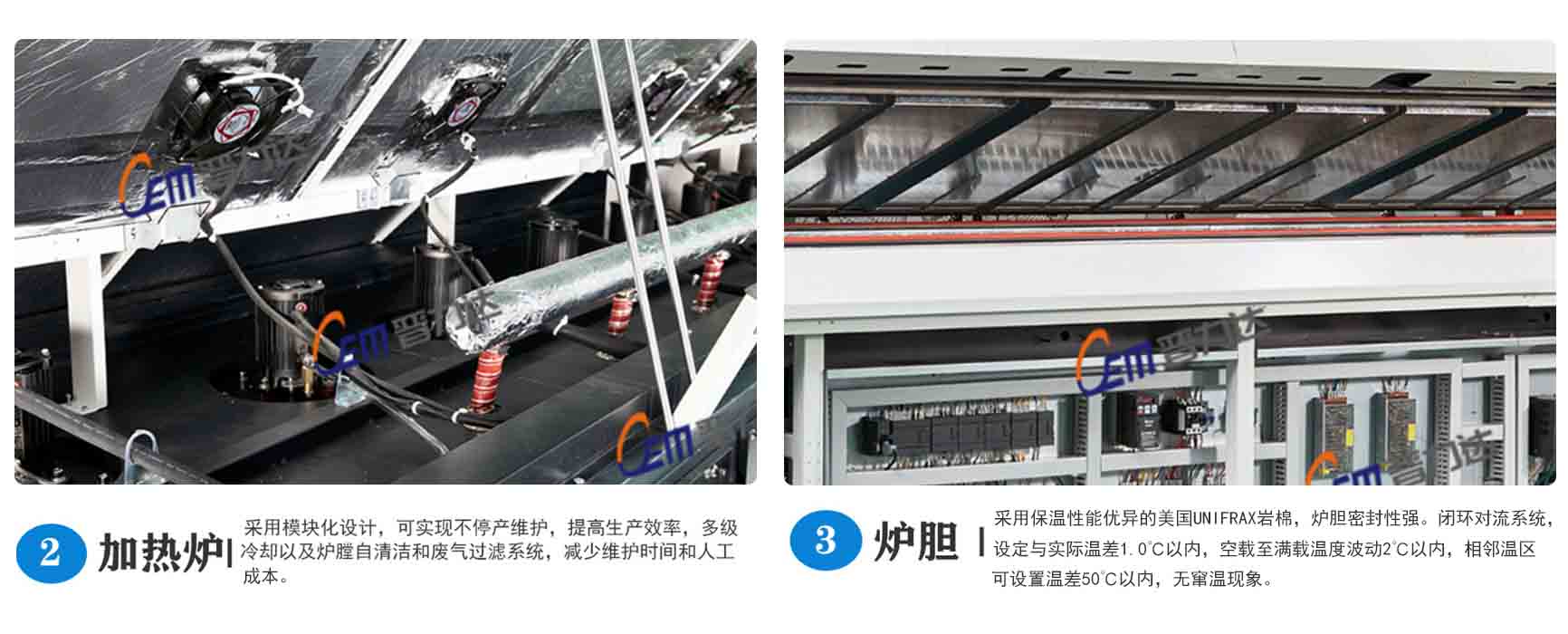 ●高精度控温系统,设定与实际温差1.0℃以内,空载至满载温度波动2℃以内,相邻温区温差80℃以内,无窜温现象。