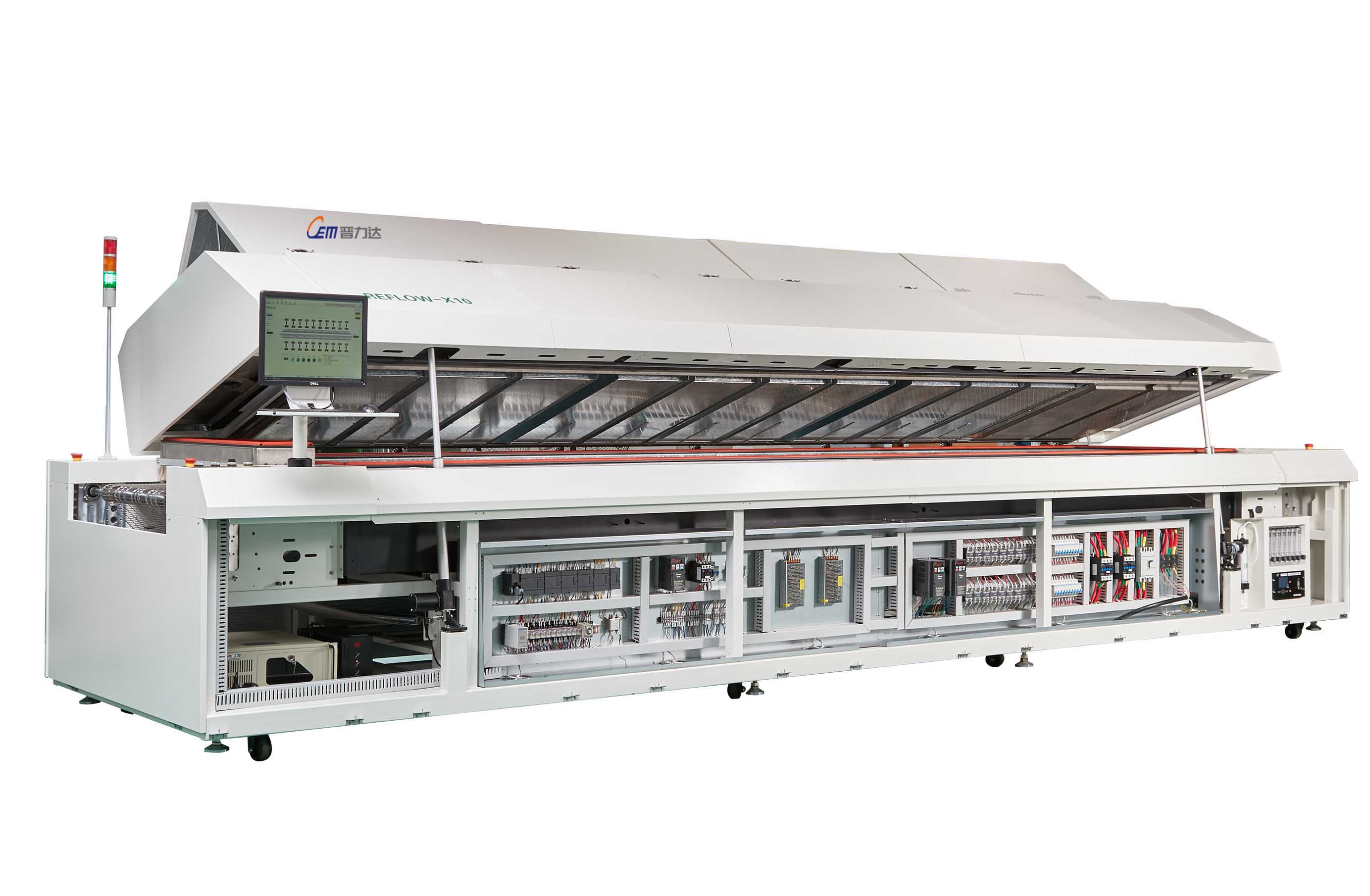 ●当前的Reflow-X系列标志着基准-总能源节省 25%,N2 消耗量减少20%。旗舰产品 Reflow-X12 提供 12 个区域和超过 4.6米的工艺长度